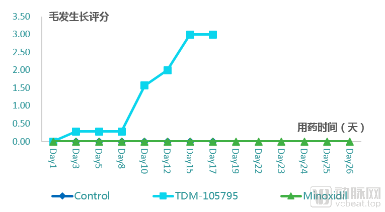 目前,特科羅生物首推的生發項目已經成功研發出具有顯著生發效果、具有全球自主知識產權的藥物分子。該藥物分子已陸續取得中國專利、PCT專利、美國及日本專利,歐盟專利正在進入審查階段。該項目已完成藥效/藥代等實驗、CMC制劑研究和臨床前毒理安評試驗,目前正準備臨床申報資料,將在今年下半年作為全球首創新藥申報美國IND并啟動臨床I期實驗。